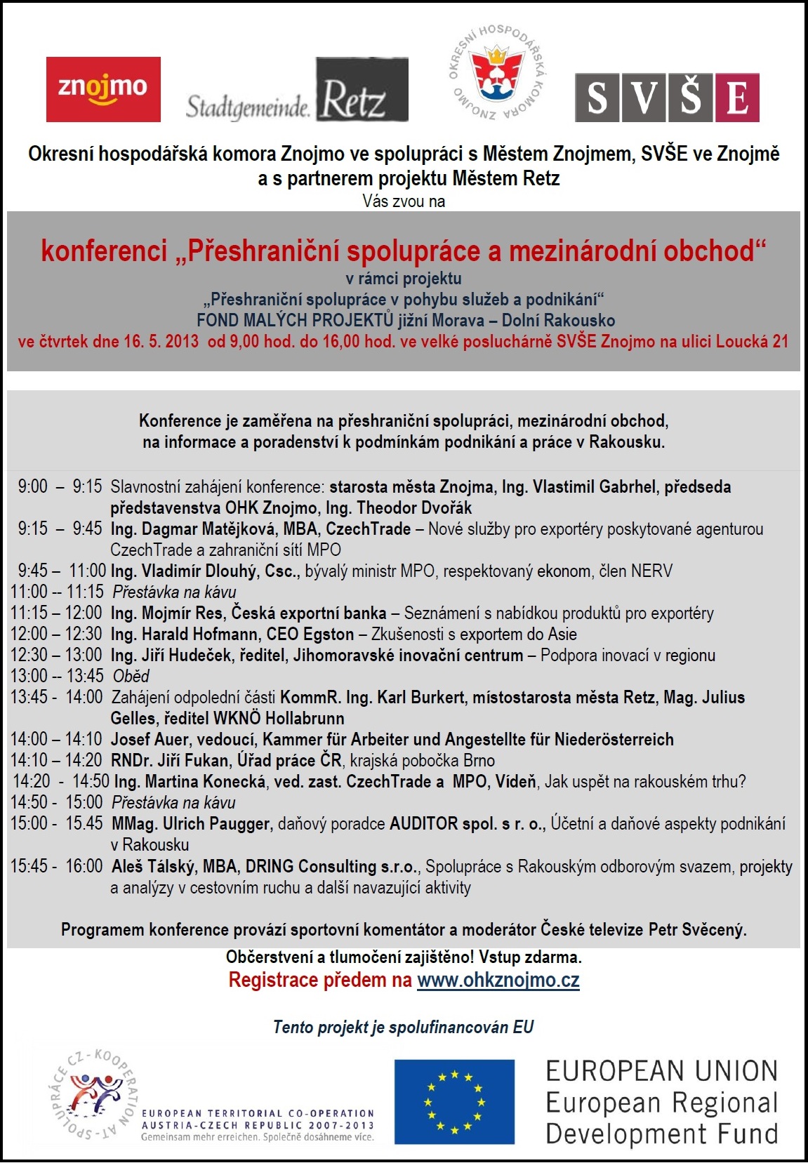 Pozvání na konferenci "Přeshraniční spolupráce a mezinárodní obchod" dne 16. 5. 2013