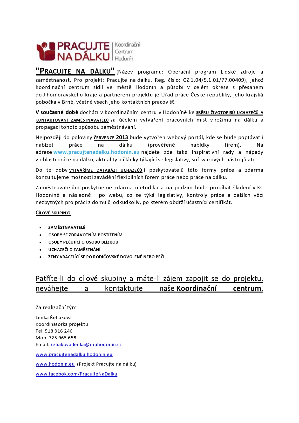 Informace o projektu "Pracujte na dálku"