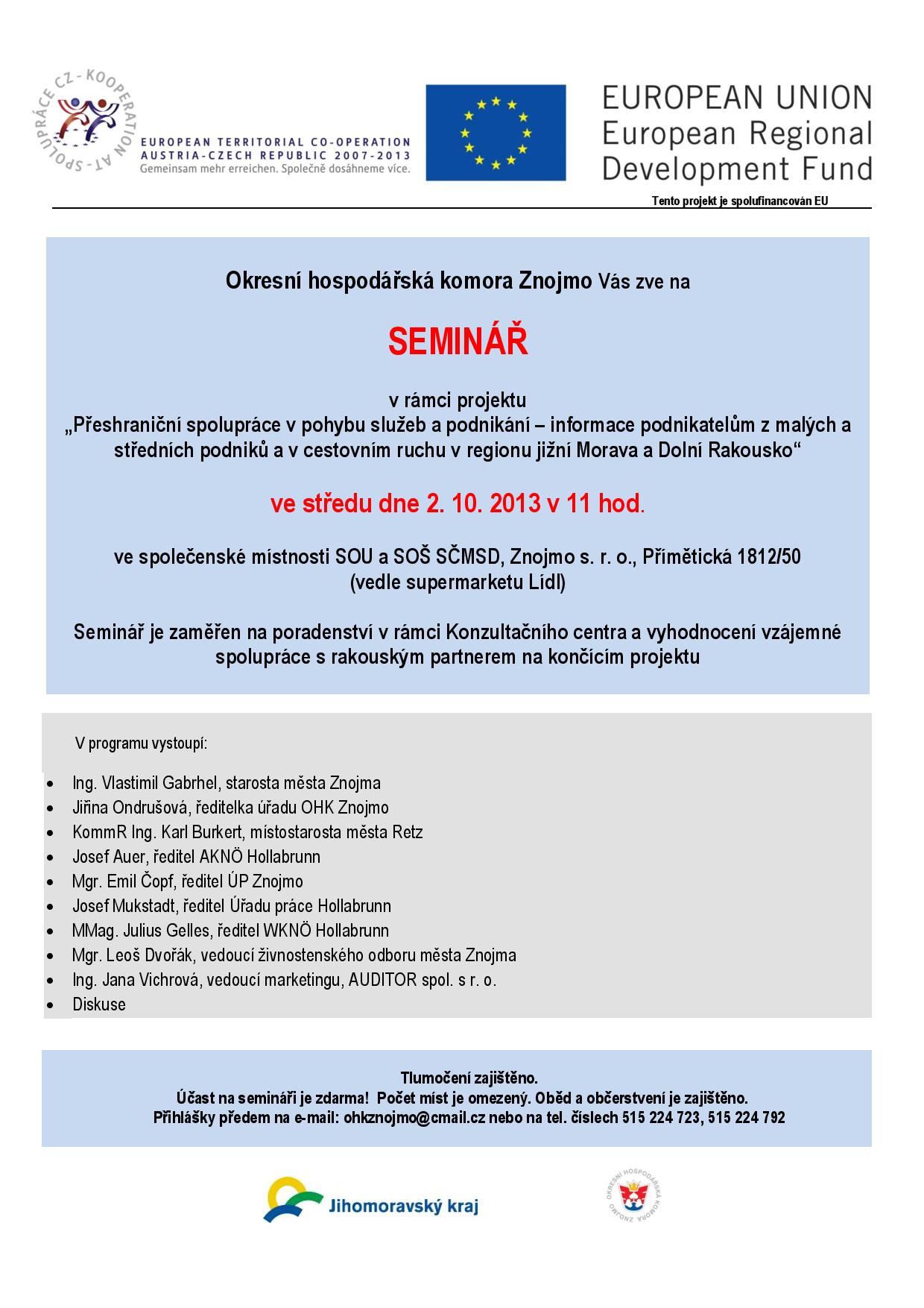 Pozvání na seminář dne 2.10.2013