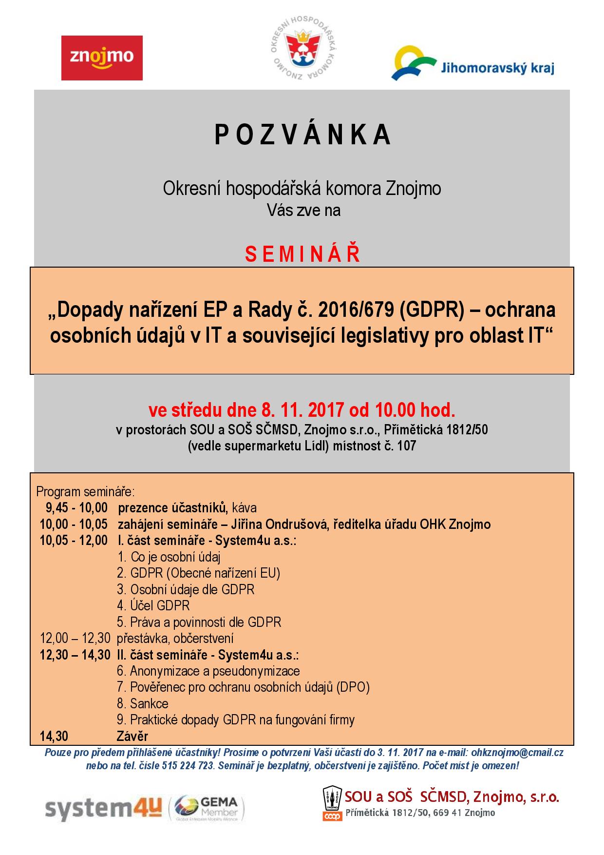 Pozvání pro členy OHK Znojmo